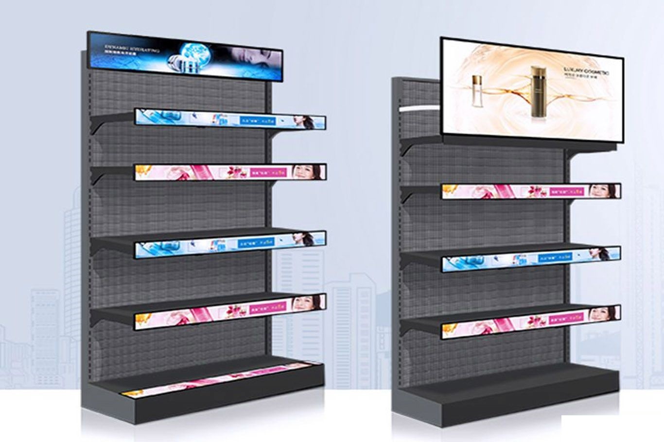 शेल्फ एलईडी डिस्प्ले स्क्रीन जिसमें सामान्य शेल्फ एलईडी डिस्प्ले और शेल्फ हेडर एलईडी डिस्प्ले स्क्रीन शामिल हैं। हेडर शेल्फ एलईडी डिस्प्ले स्क्रीन शेल्फ के शीर्ष पर स्थापित होता है, विस्तृत डिस्प्ले क्षेत्र अधिक ग्राहकों का ध्यान आकर्षित कर सकता है, यह अधिक ग्राहक और लाभ ला सकता है। कई स्थापना विधियां स्थापना को अधिक सुविधाजनक बनाती हैं।