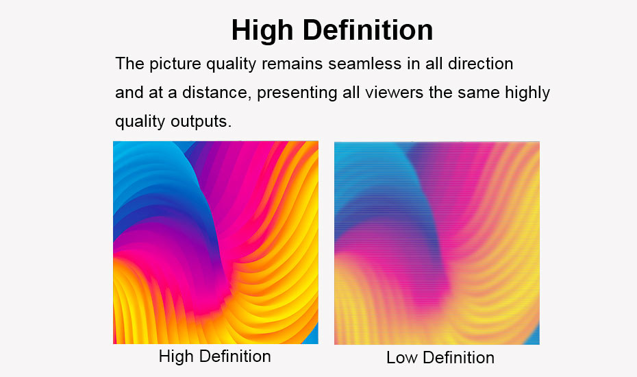 यह उच्च गुणवत्ता वाले एल्यूमीनियम कैबिनेट, 140°/120° देखने के कोण, और 14बिट ग्रे स्केल के साथ बनाया गया है। हमारे एलईडी डिस्प्ले में सिंक्रनाइज़ेशन नियंत्रण प्रणाली भी है,कई डिस्प्ले को प्रबंधित करना आसान बनाता है.